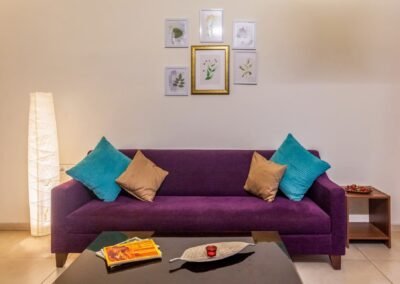 - Located in an opulent suite complex, the interiors create a cozy & inviting atmosphere, offering picturesque green views that enhance your stay.