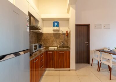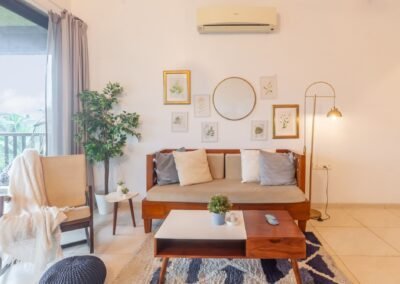 - Located in an opulent suite complex, the interiors create a cozy & inviting atmosphere, offering picturesque green views that enhance your stay.