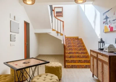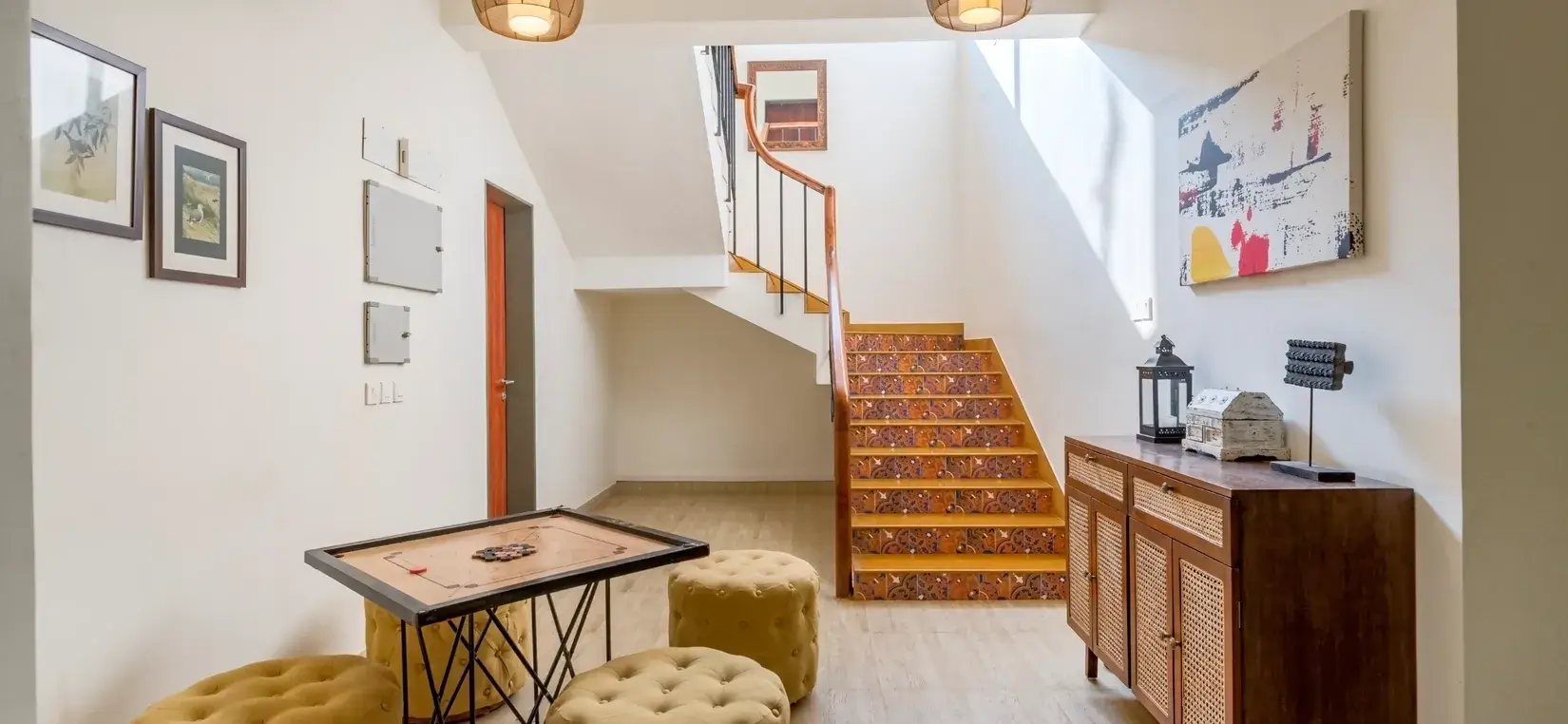- The villa comprises a spacious living room with a dining space and a bedroom on the ground floor with ensuite washroom.